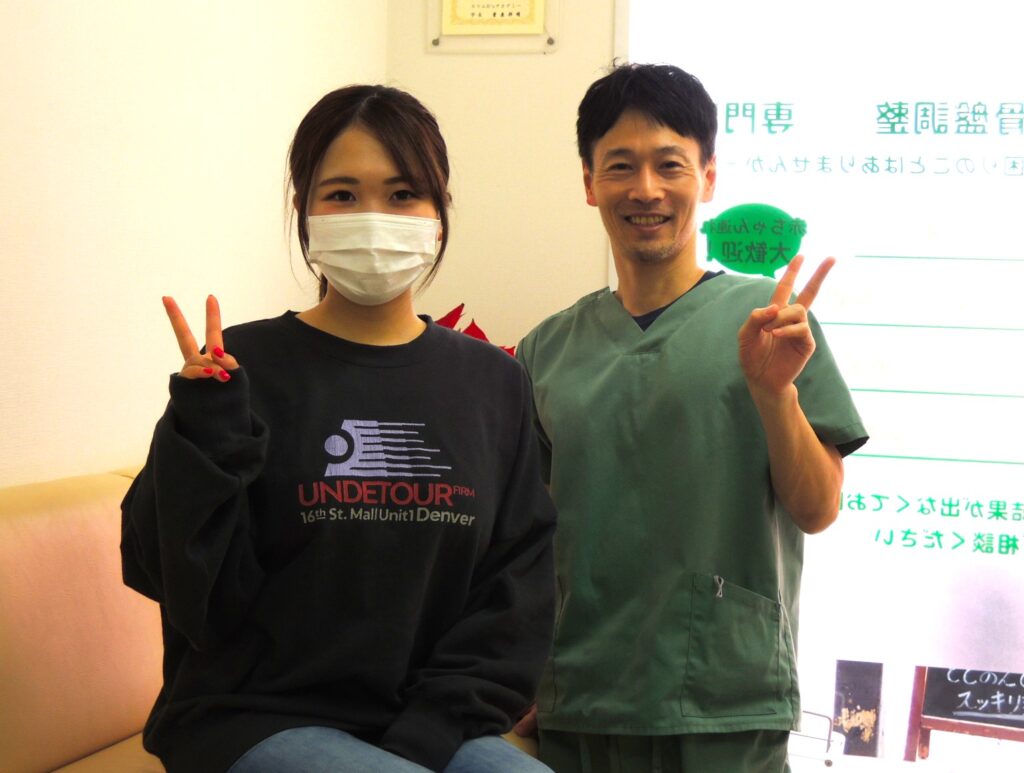 院長 イケちゃんY.S様、この度は数多くのお店の中から当院を選んで頂きありがとうございました。他店のように複数スタッフの分業ではなく、当院はすべて院長1人で担当します。あいさつだけ、一言二言のコミュニケーションで、あとはカルテだけの情報でマニュアル通りの流れ作業。自分に本当に必要なアプローチをしてもらえているのだろうかと不安しかありません。肩こり、腰痛、骨盤など、どのようなお悩みであっても、辿り着くまでの背景は1人1人違います。1人で1人を担当する、当然のことのように私は思います。ズボンも履けるようになられて良かったです。これからも元気なママでがんばってくださいね。今後とも宜しくお願い申し上げます。